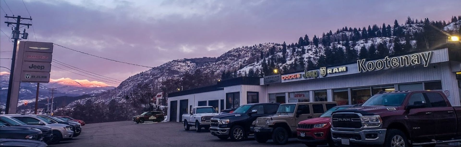 At Kootenay Chrysler Dodge Jeep Ram in Trail, BC, we’re dedicated to helping you find the perfect vehicle. Our experienced and committed sales team has spent years guiding customers throughout the Kootenays toward the right car, truck, or SUV, and we take pride in delivering exceptional customer service that consistently exceeds expectations. Conveniently located near Rossland, Montrose, Fruitvale, and surrounding communities, we are proud to be one of the top car dealerships in the region. Our online inventory features a wide selection of new Chrysler, Dodge, Jeep, and RAM models, including the Chrysler Pacifica and 300; RAM 1500, 2500, and 3500; Jeep Grand Cherokee, Compass, Wrangler, Wagoneer, and Gladiator; as well as the Dodge Hornet, Grand Caravan, Durango, Charger, and Challenger. We also offer a large variety of well-maintained used vehicles from many of today’s leading manufacturers, making it easy to find exactly what you need.